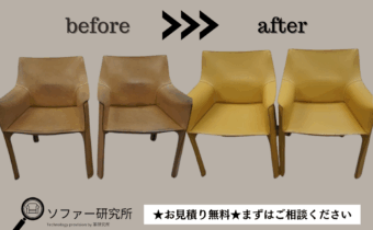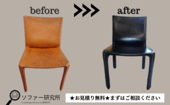 「ソファー研究所」の特徴と致しまして、張替えだけでなく【レザーオーダーシステム】と【染め直し施工】の組み合わせにより従来には無かったソファー補修を提案させて頂きます。