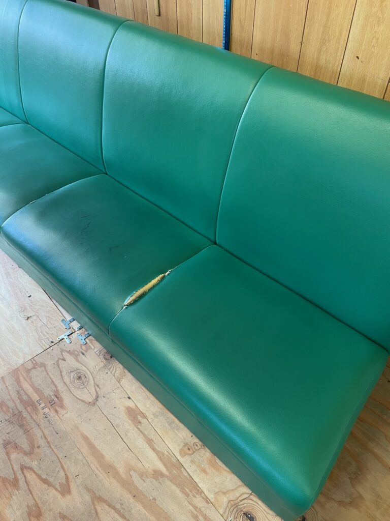 今回ご相談いただいたベンチソファも、見た目全体としてはまだ綺麗な状態を保っていたものの、やはり一番体重がかかる座面部分に劣化が集中しており、表面の合皮が傷んでいたり、ウレタンのへたりによって座面の形が少し崩れている状態でした。