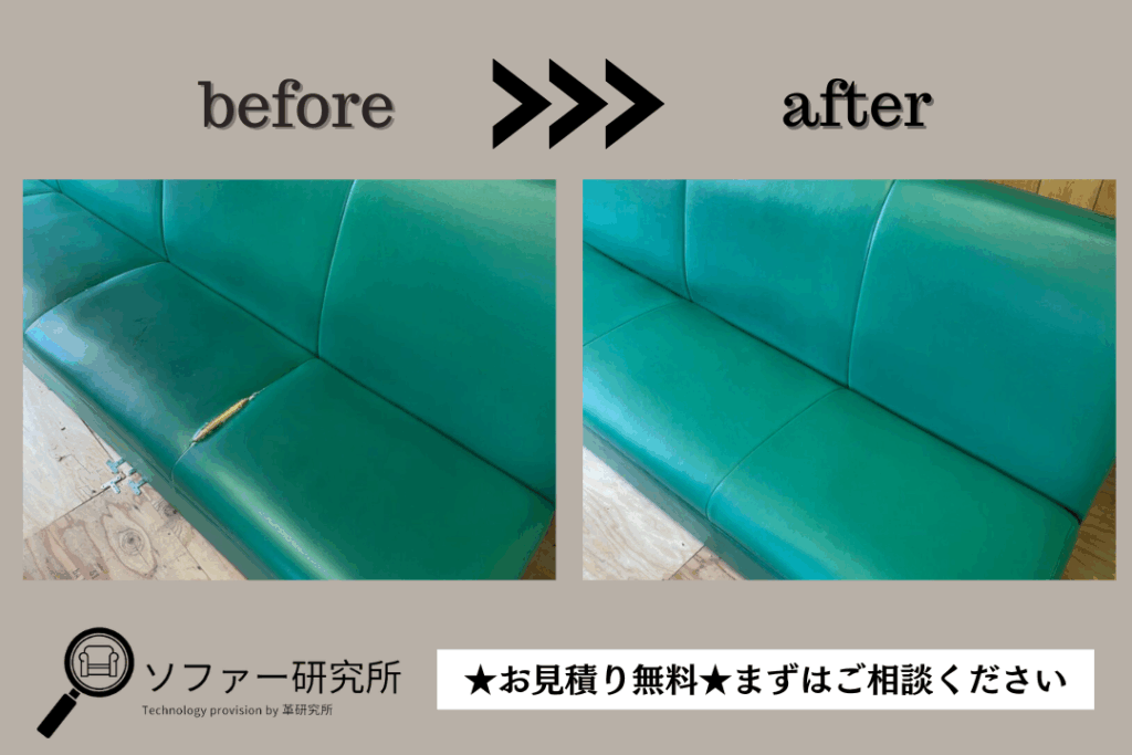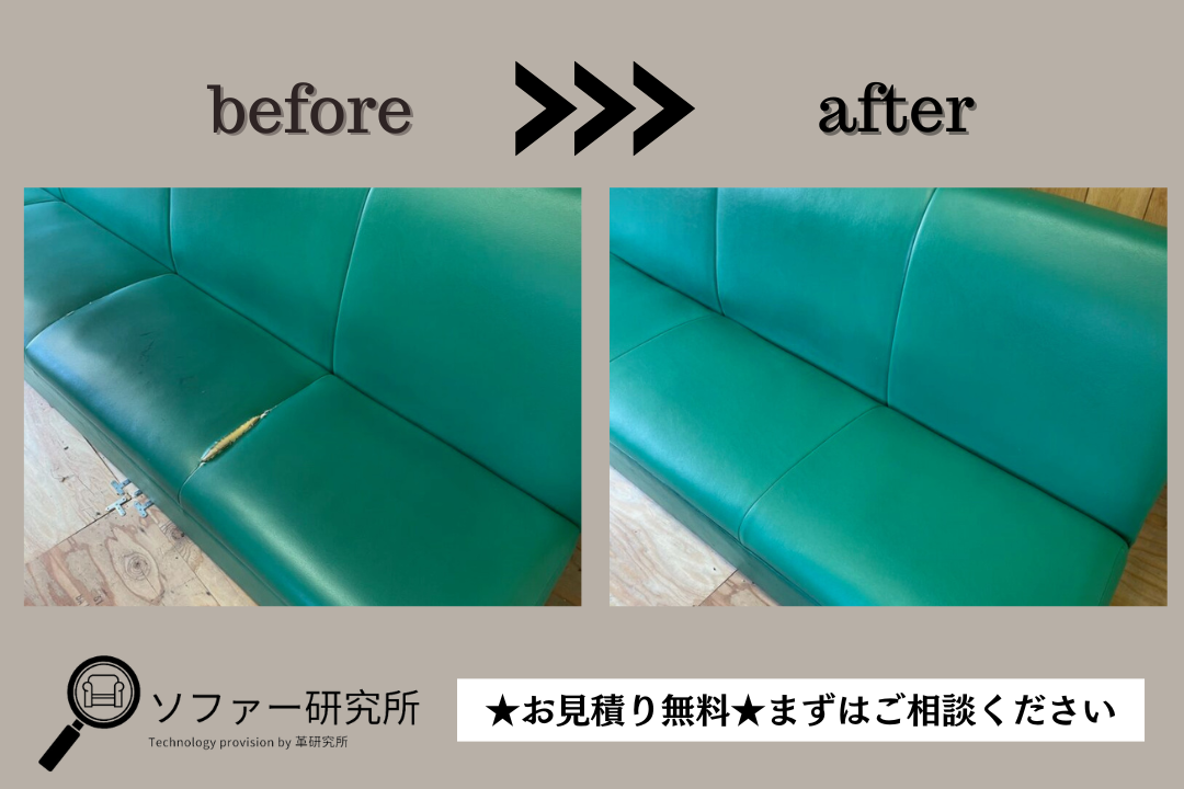 ソファ研究所では、今回のような部分張り替えの修理はもちろんのこと、革を一から使用した本格的な張り替えや、ウレタンの交換、クッションの補修など、お客様のご要望やソファの状態に合わせて最適な修理方法をご提案させていただいております。