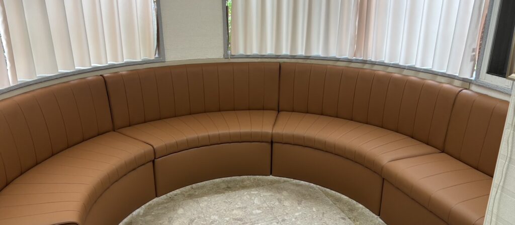 座面はウレタンの補填を行い、背もたれは若干のスレ傷発生でしたので、リペア施工を行いました。