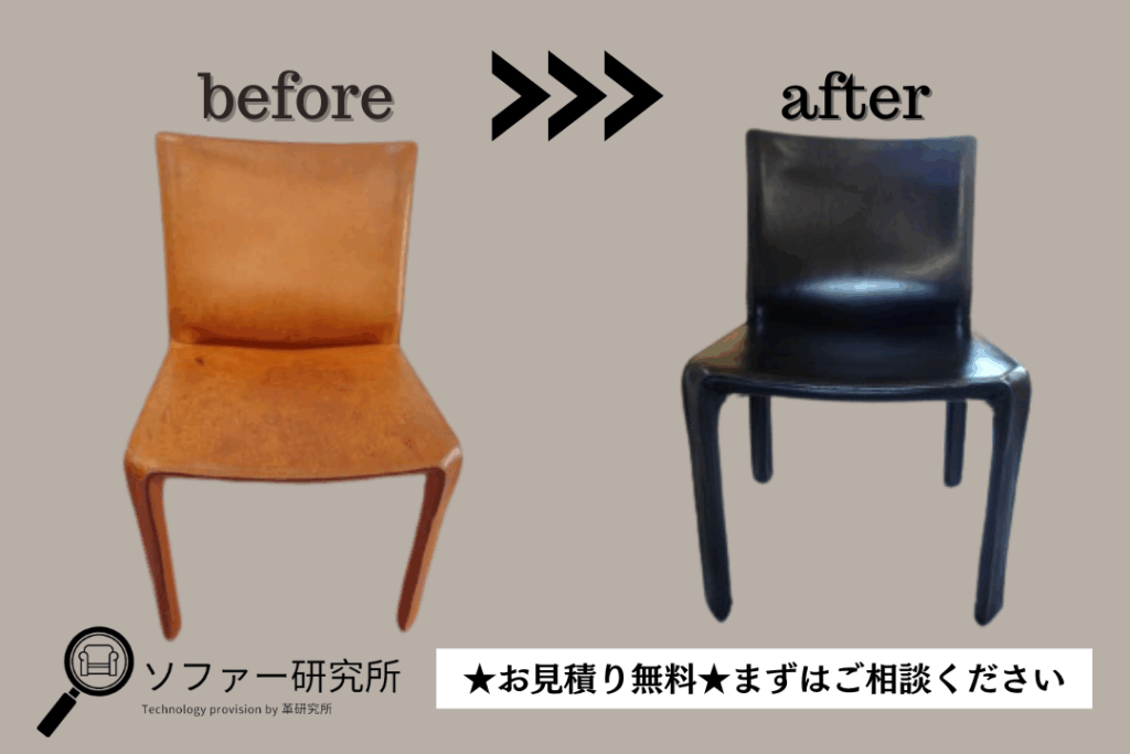 CABチェアは構造上「張替えが極めて難しい」ため、このような リカラーによる再生 が最適なケースが多いです。