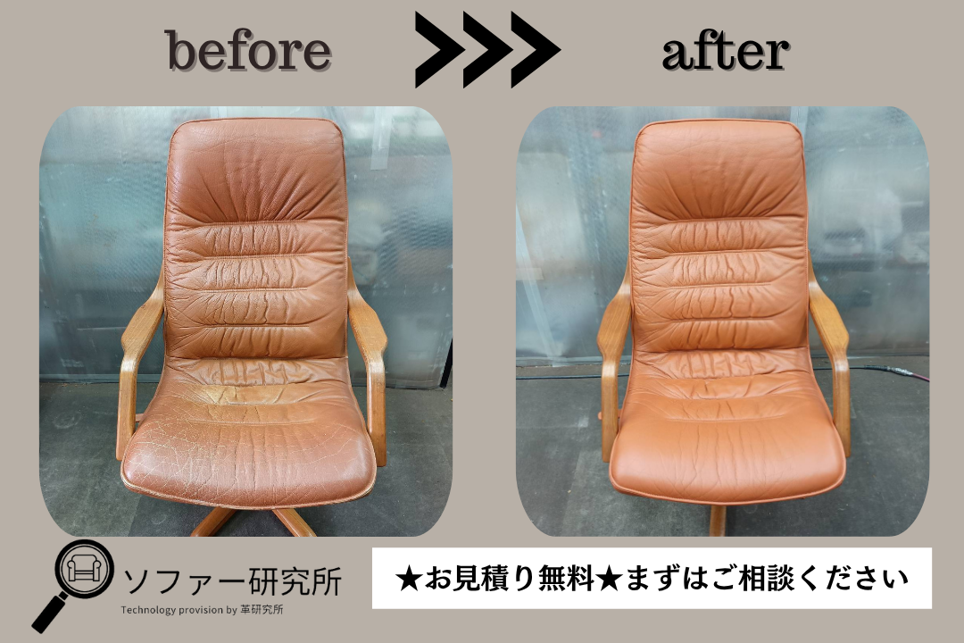 「ソファー研究所」の特徴と致しまして、張替えだけでなく【レザーオーダーシステム】と【染め直し施工】の組み合わせにより従来には無かったソファー補修を提案させて頂きます。