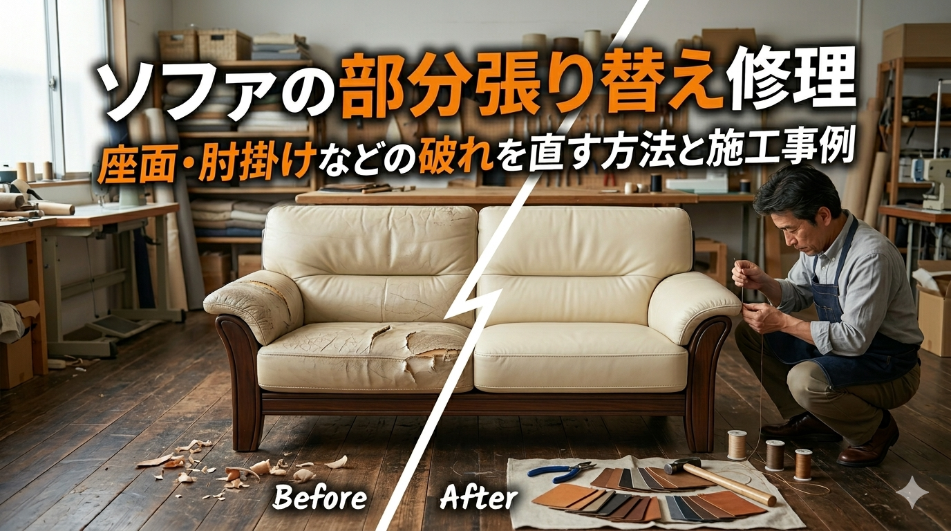 ソファー研究所では、**劣化している部分だけを修理する「部分張り替え」**をご提案しています。