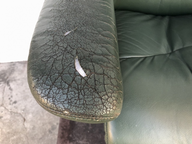 左右の肘掛けにひび割れが発生し、破れが進行していました。