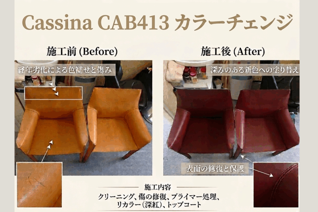 Cassina CAB413は張り替え不要|東海で選ばれるカラーチェンジ修理とは?